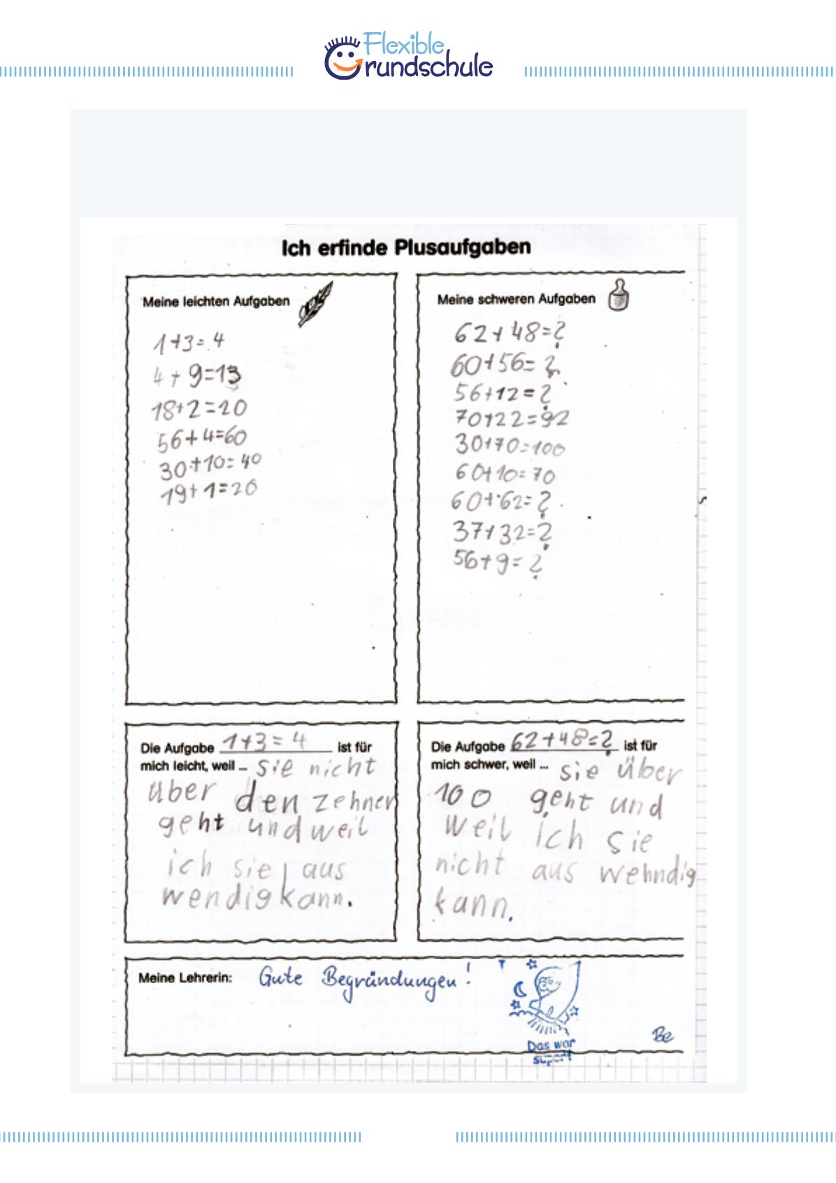 Praxisbeispiel: Lerntagebucheintrag „Ich erfinde Plusaufgaben“